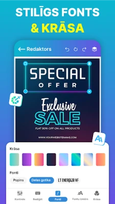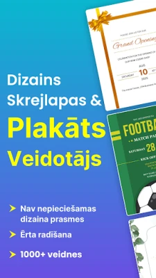 Vai vēlaties radīt profesionālus reklāmas materiālus vai burvīgus ielūgumus, bet neesat dizaina guru? Šī novatoriskā lietotne pārvērš jūsu idejas par vizuāliem šedevriem bez piepūles. Ar bagātīgu jaunāko iepriekš izstrādātu veidņu bibliotēku, kas piemērota ikvienam gadījumam, jūs varat aizmirst par dizaina sarežģītību. Sākot ar aizraujošiem izpārdošanas plakātiem un beidzot ar personīgām dzimšanas dienas ballītes skrejlapām, lietotne nodrošina visu nepieciešamo, lai jūsu ziņojums izceltos. Izveidojiet savam uzņēmumam vai pasākumam pielāgotu vizuālo saturu, veicot tikai dažus pieskārienus, un bez maksas atveriet savu radošumu.