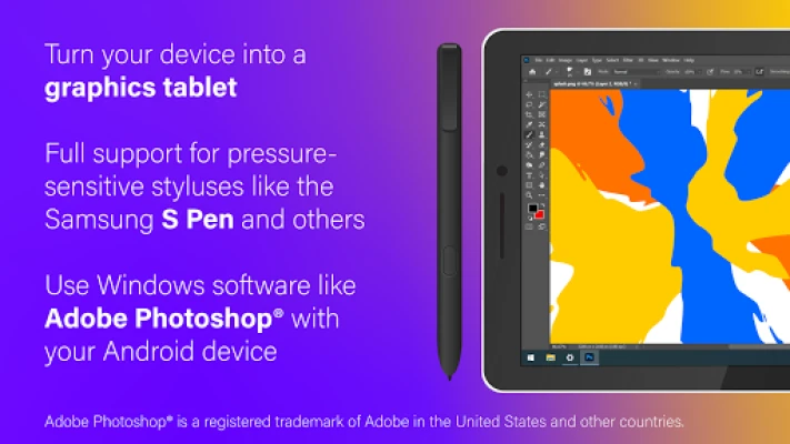 SuperDisplay paver durvis uz radošuma pasauli, pārvēršot jūsu Android ierīci par jaudīgu grafisko planšetdatoru. Izmantojot spiedienjutīgus irbuļus, piemēram, Samsung S Pen, varat strādāt ar profesionālām lietojumprogrammām, tādām kā Adobe Photoshop®, tieši no sava tālruņa vai planšetdatora. Šī funkcija ir ideāli piemērota digitālajiem māksliniekiem, dizaineriem un ikvienam, kam nepieciešama precīza kontrole radošajā procesā. SuperDisplay dod jums brīvību zīmēt, skicēt un rediģēt ar nepieciešamo jutību un detalizāciju, jebkurā vietā, jebkurā laikā. Adobe Photoshop® ir Adobe reģistrēta preču zīme Amerikas Savienotajās Valstīs un citās valstīs.